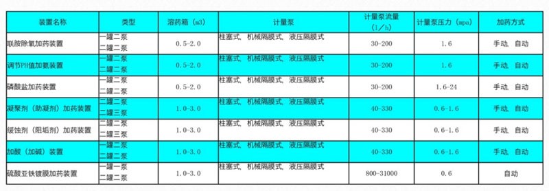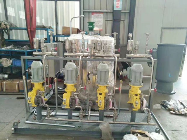 加藥系統(tǒng)是一套完整的設(shè)備,配料,混合,液體的輸送,在一個(gè)自動(dòng)控制,原水,水,油田鍋爐,廣泛應(yīng)用于發(fā)電廠集輸脫水處理系統(tǒng),石油化工各種加藥系統(tǒng)和廢水處理系統(tǒng)。作為混凝劑,磷酸鹽,氨,石灰水,緩蝕劑,阻垢劑,劑等。加藥裝置主要由攪拌罐,溶液箱,計(jì)量泵,管道閥門(mén),在機(jī)電一體化設(shè)備電氣控制柜組合平臺(tái)。